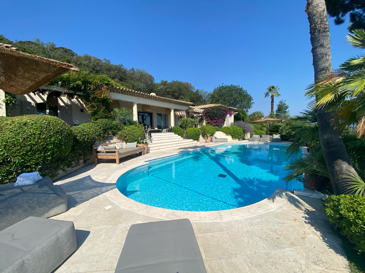 Nichée dans le prestigieux quartier de la Messardière à Saint-Tropez, la Villa Rivo Alto bénéficie d’une vue mer exceptionnelle et d’un accès rapide aux plages comme au centre du village.